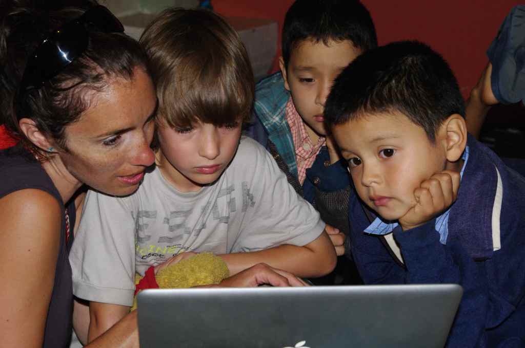 En prime : Xavier à pratiquer son espagnol avec Ariel et Carlo, deux jeunes frères de son âge qui habitent notre auberge.
