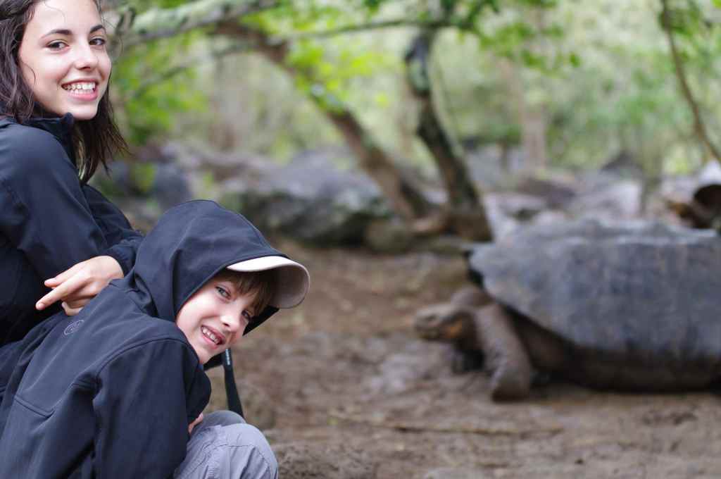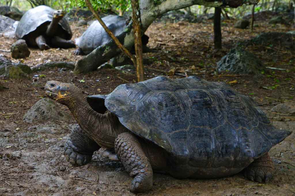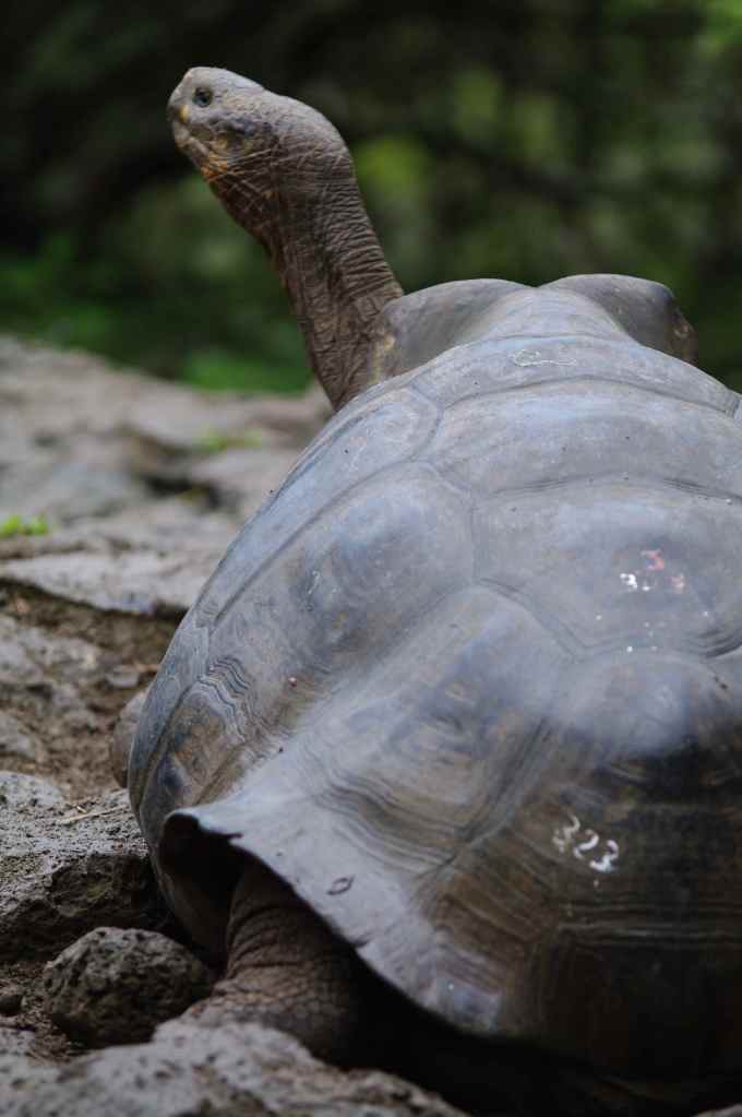 épaules. Les iguanes marins nous regardent d’un œil sans jamais sourciller. Et les tortues géantes : elles sont magnifiques!!!! Celles que nous avons admirées habitent un refuge qui les préserve dans leur habitat naturel tout en tentant de maximiser l’augmentation de leur population. 16 espèces de tortues vivent aux Galapagos. Il n’y a pas si longtemps, elles étaient 19. Les humains sont leurs principaux prédateurs. Les premiers colons les mangeaient et se servaient surtout de leur huile pour allumer des lanternes.